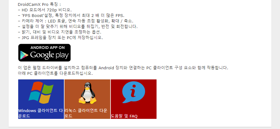 먼저 안드로이드 플레이스토어에서 "드로이드캠" 이라고 검색해서 무료버전을 다운받아줍니다.