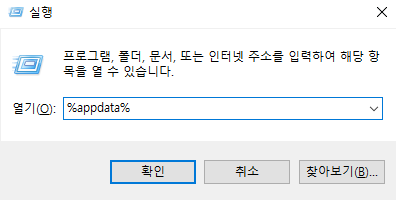 실행창에 %appdata% 를 입력한다.