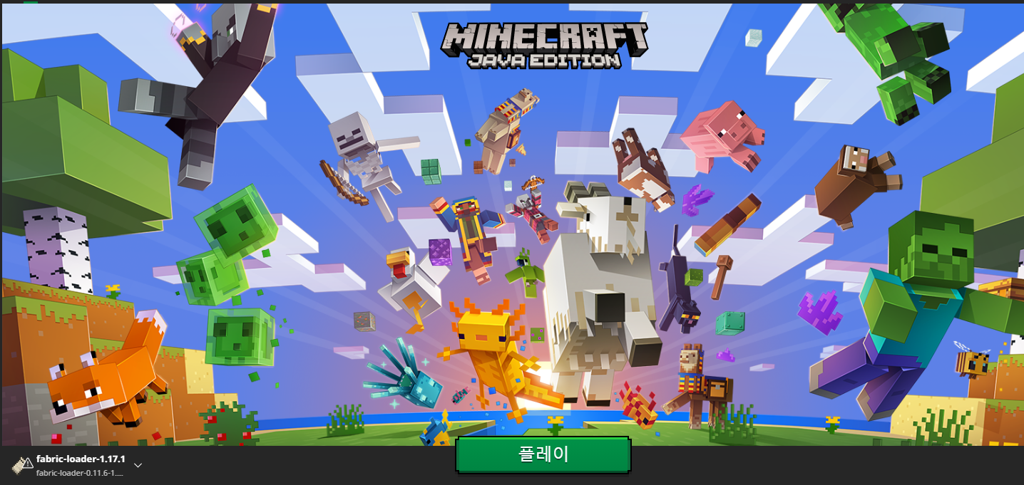9. 이제 마인크래프트를 실행해줍시다.