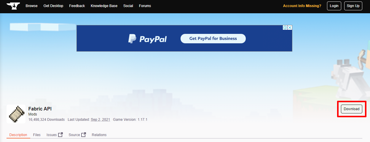 5. https://www.curseforge.com/minecraft/mc-mods/fabric-api 에 들어간다.