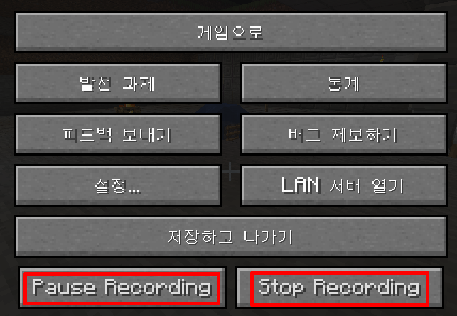 게임 메뉴를 보면 하단에는 녹화 일시정지 / 녹화 정지 버튼도 있습니다.