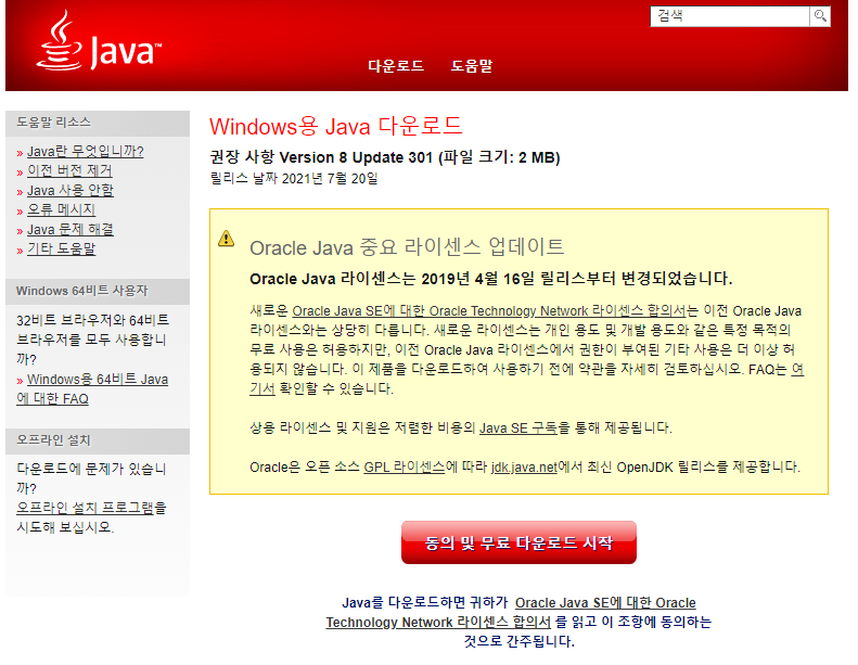 https://java.com/ko/download/ie_manual.jsp?locale=ko 로 들어가서