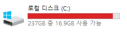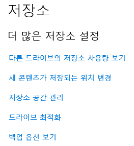 저장소를 클릭하고 C드라이브를 차지하고 있는 파일의 종류가 뭔지 확인합니다.
