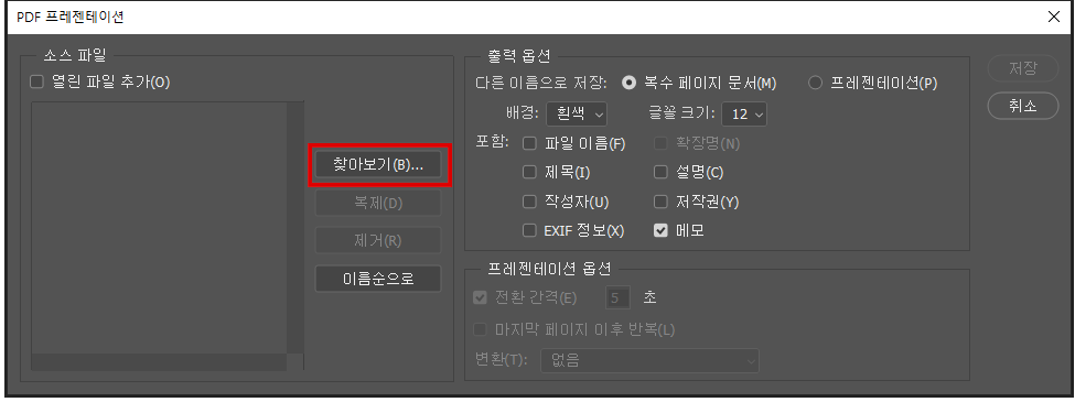 파일 > 자동화 > PDF 프레젠테이션