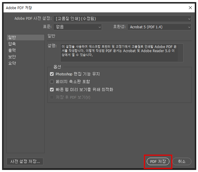 <포토샵 편집 기능 유지 없이 저장>