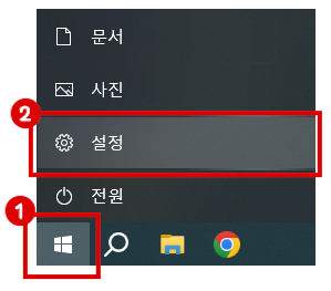 윈도우즈 시작 아이콘을 클릭하고 설정 클릭