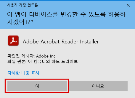 기본 PDF 응용 프로그램으로 설정하시려면 예(Y) 클릭