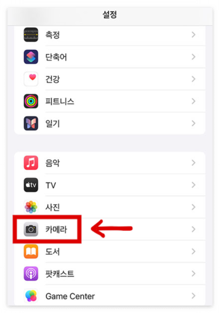 2. 스크롤을 내려 카메라로 들어갑니다.