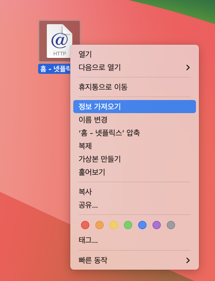2) 바로가기 아이콘 우클릭 > 정보 가져오기 클릭