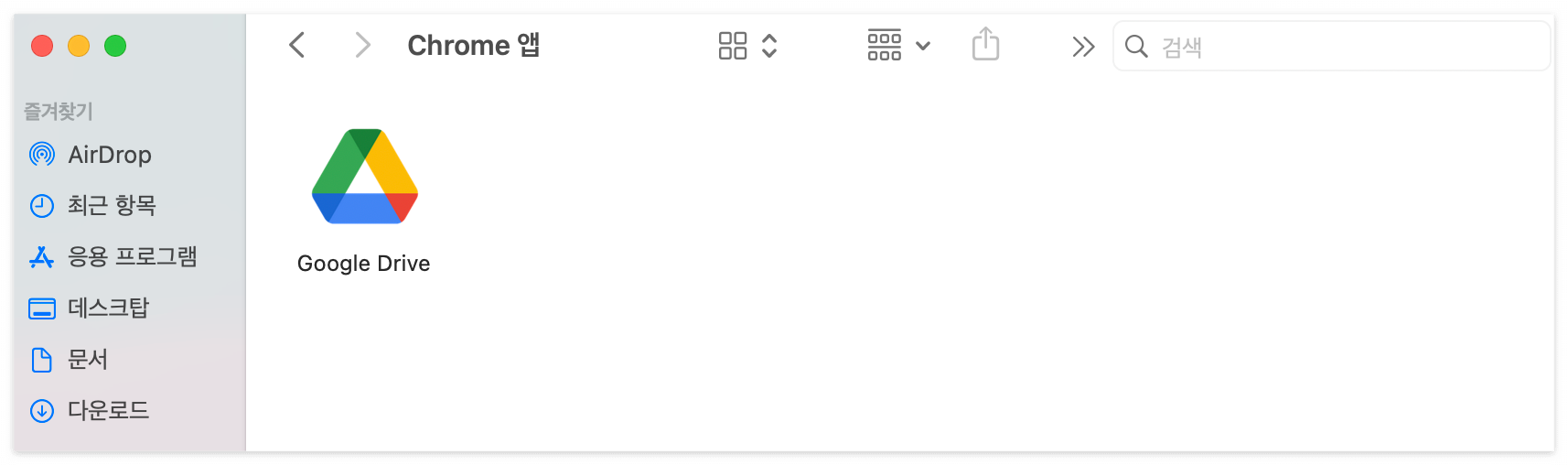 Finder에서 Chrome 앱 폴더에 있는 앱을 휴지통에 버립니다.