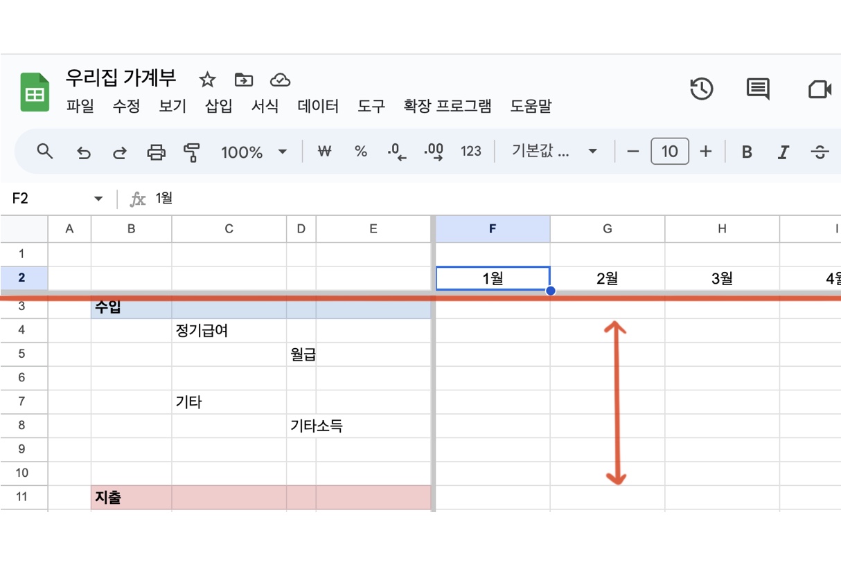 특정 행과 열이 고정되는 방법에 대해 알아봅시다.